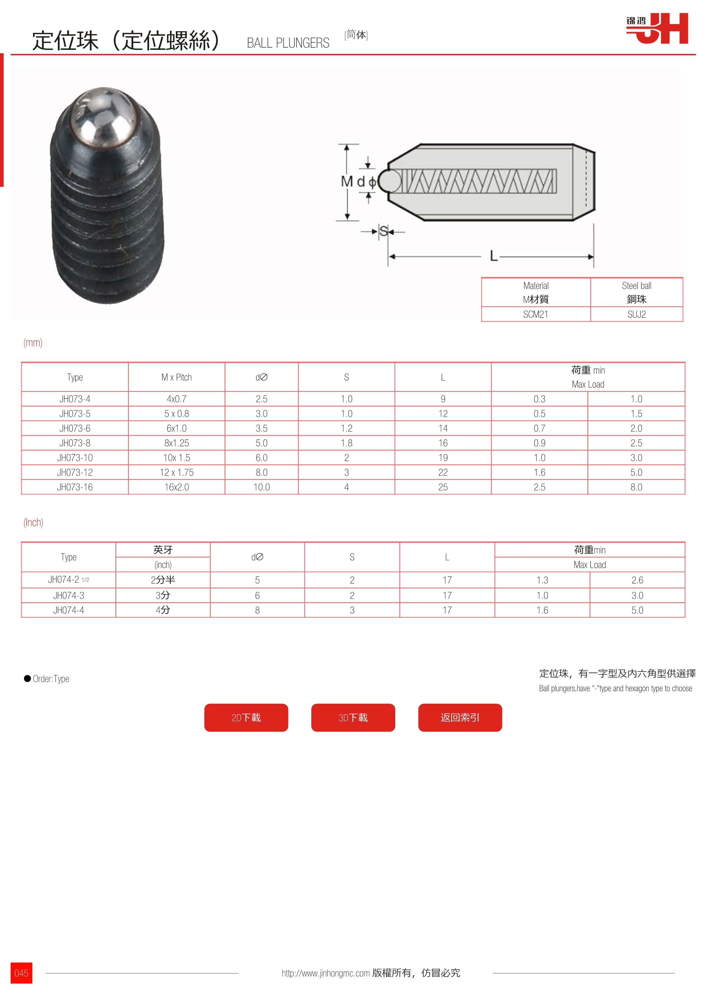 | Type | 英牙 | d? | S | L | 荷重min | |
