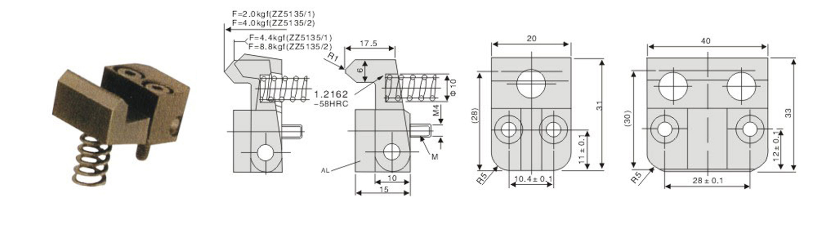 | h1 | l1 | l2 | l3 | l4 | l5 | d1 | b1 | b2 | F(kgf) | |