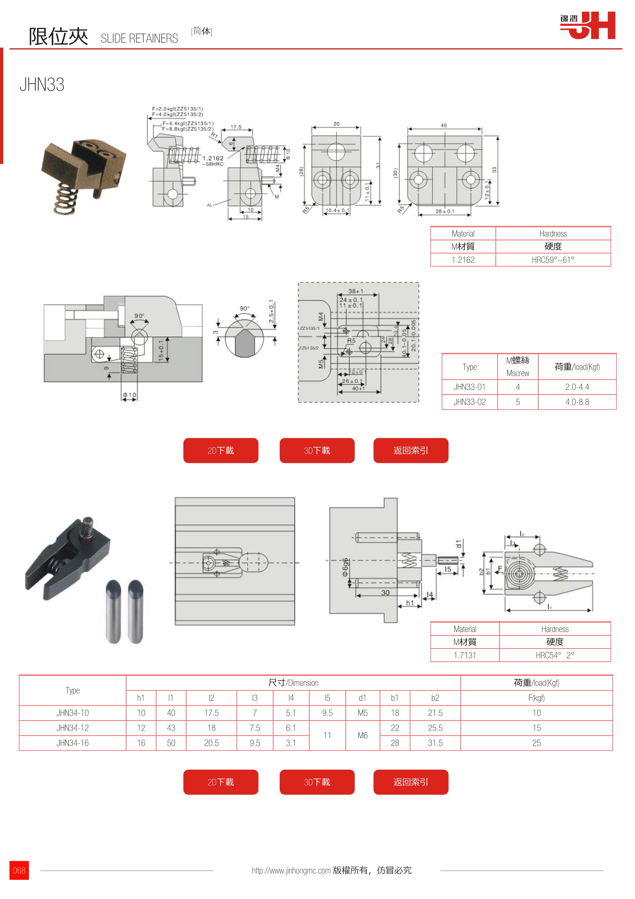 | Type | 尺寸/Dimension | 荷重/load(Kgf) | ||||||||