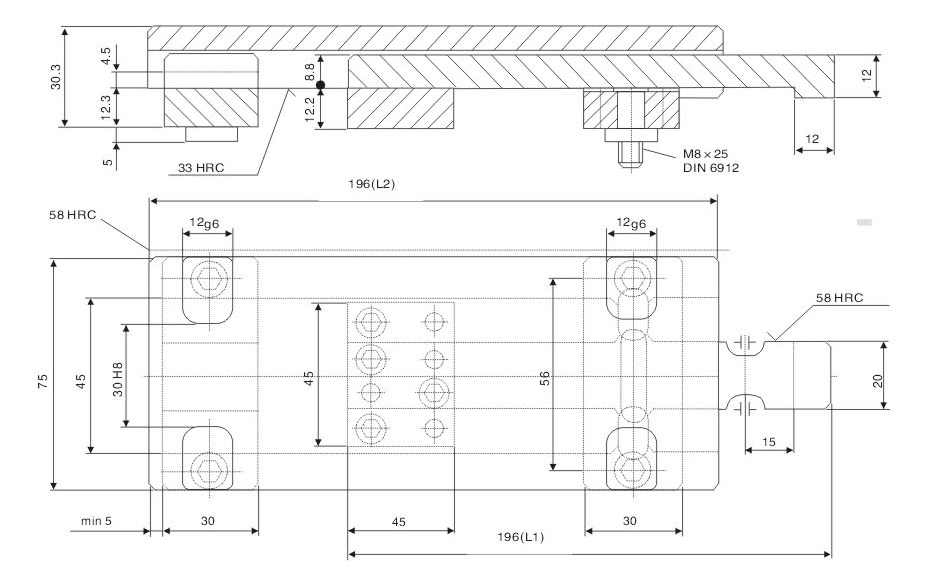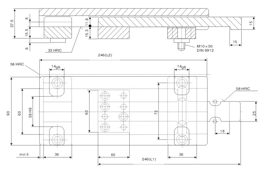 ※ Precautions: lt is required to calculate the same stroke for symmetrical installation during die processing. Otherwise, it will cause unbalance force of single set of modelocking buckle and breakage of component.