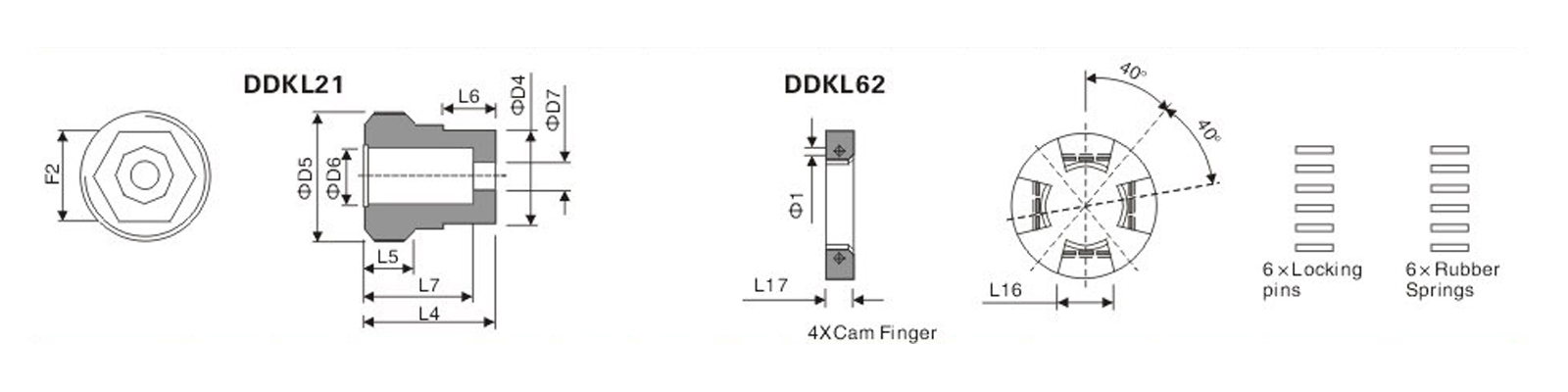 | DDKL2011 | 小型 | 28 | M22x1.25 | 13.5 | 34 | 5 | 26 | 10 | DDKL2041 | 小型 | 6.5 | 56 | DDKL2051 | 小型 | 12.3 | 12.9 | 15 | 3 |