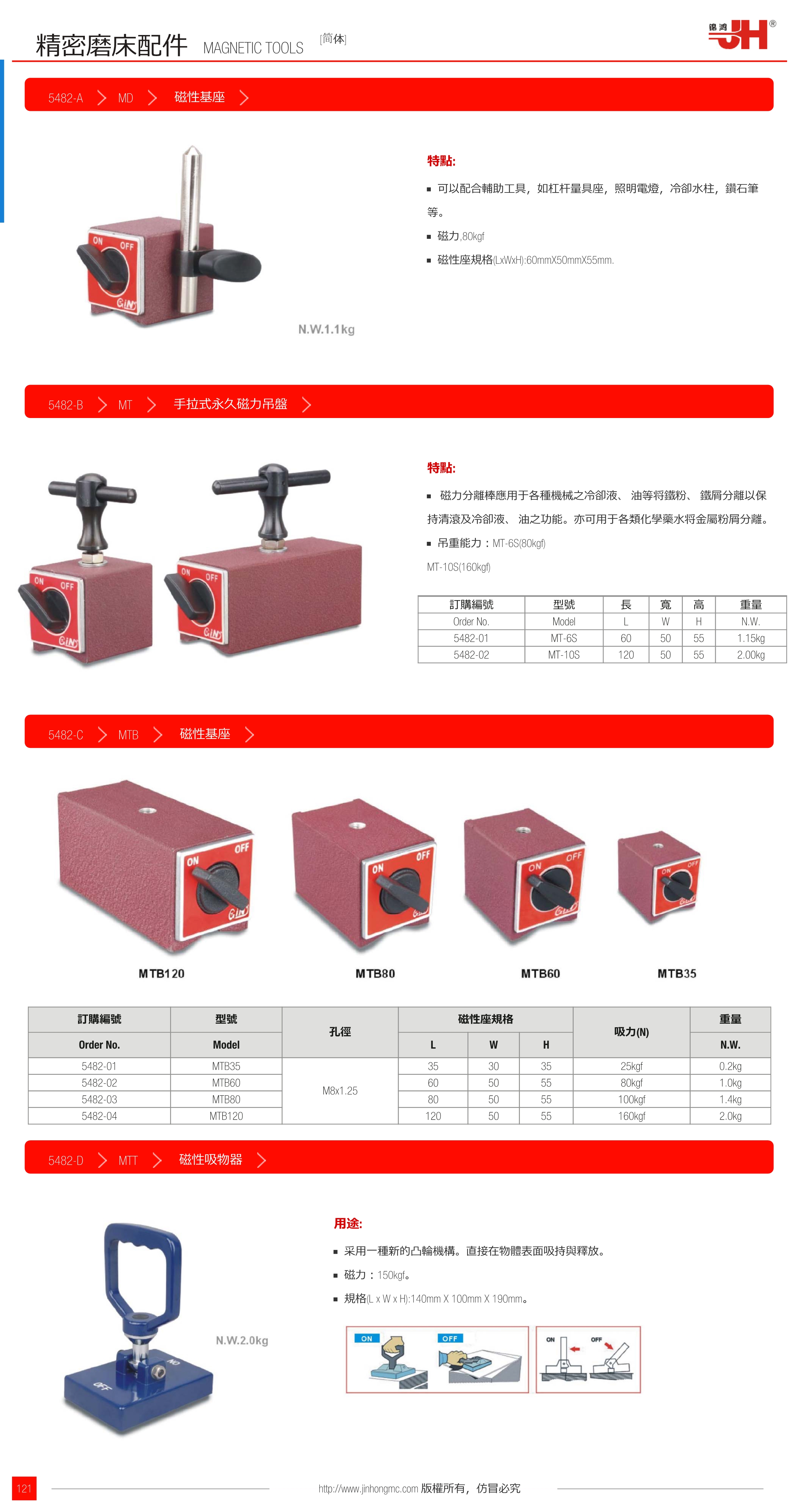 | 5482-04 | MTB120 | 120 | 50 | 55 | 160kgf | 2.0kg | |