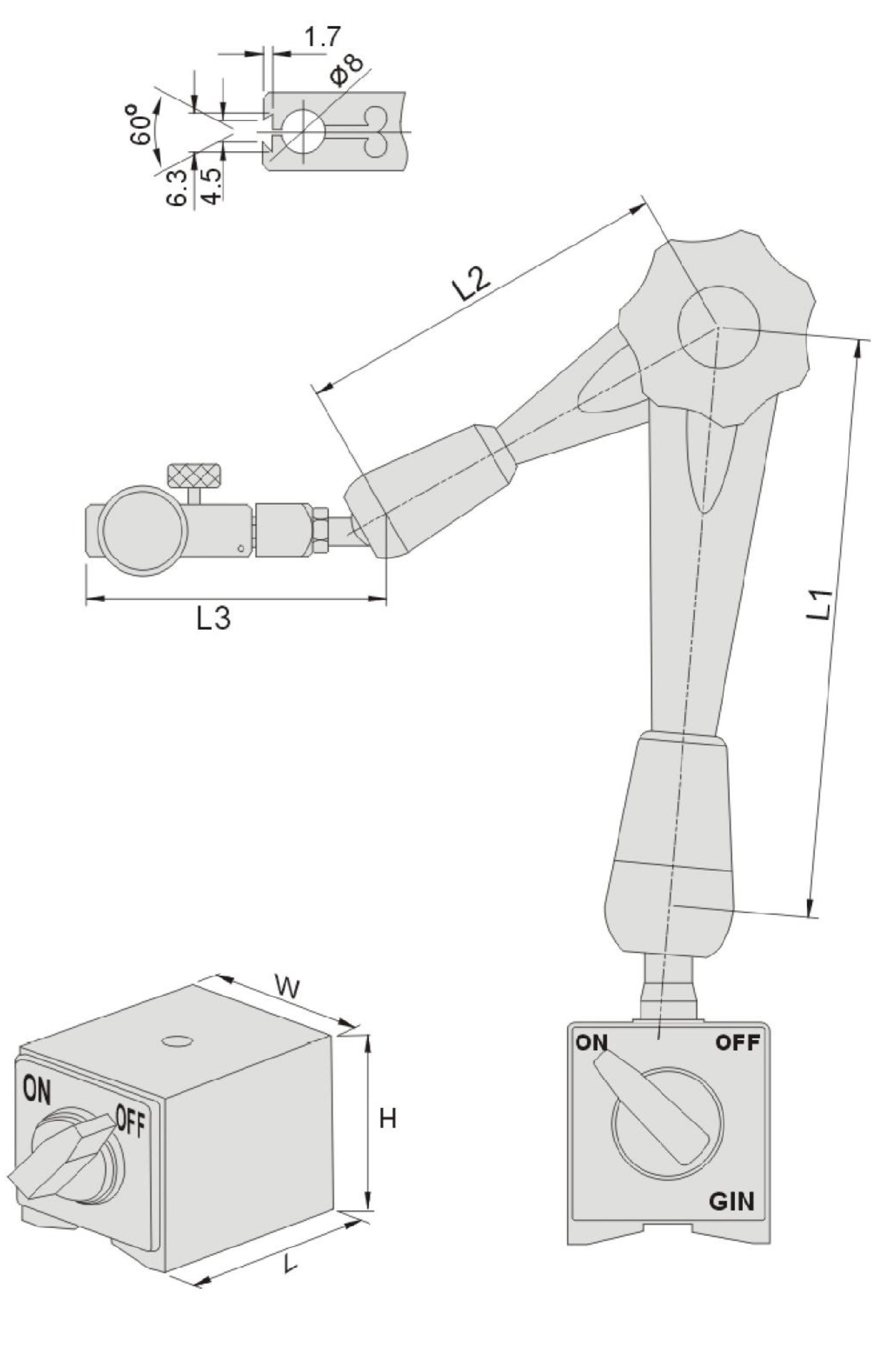 | 訂購編號 | 型號 | 杠桿規格 | L3 | 磁性座規相 | 吸力(N) | 重量 | |||