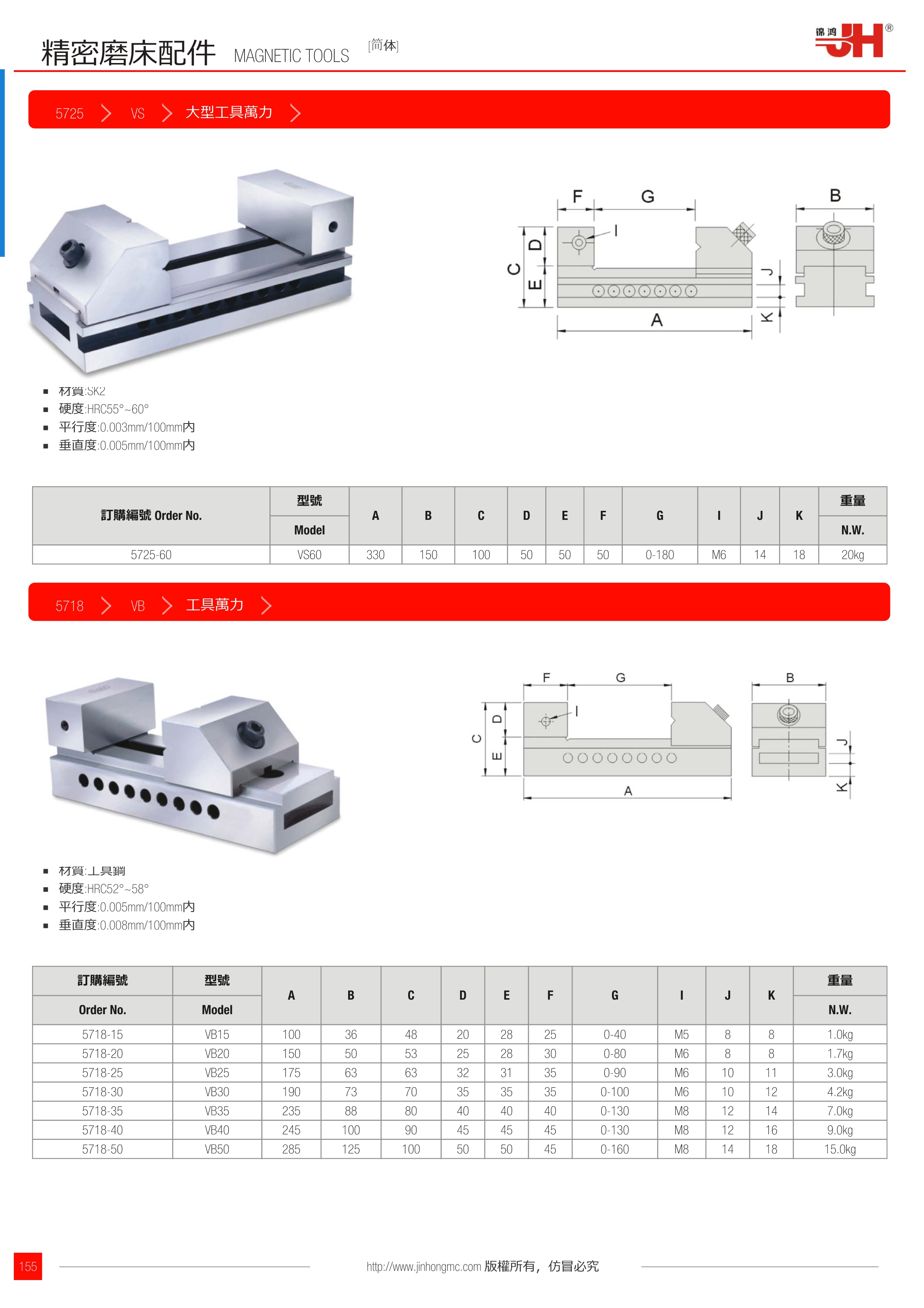 | 5718-50 | VB50 | 285 | 125 | 100 | 50 | 50 | 45 | 0-160 | M8 | 14 | 18 | 15.0kg |