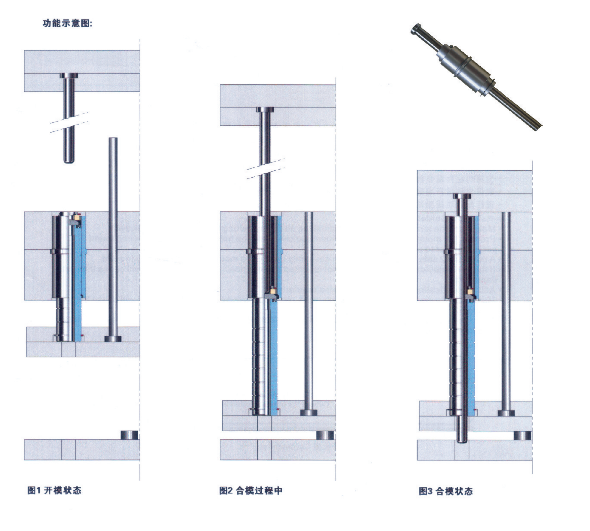 1.此裝置作用為在合模前先將頂針板完全復位,從而防止模具損壞;