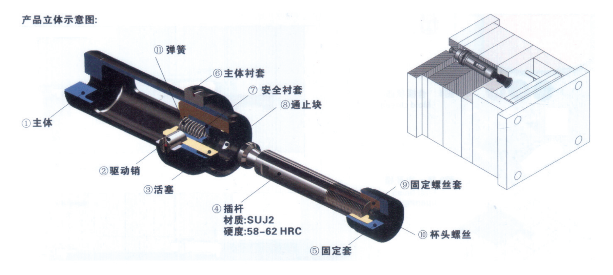 復(fù)位機(jī)構(gòu)為精密零件,精準(zhǔn)對(duì)稱安裝(同一模胚至少使用2套)根據(jù)模胚及所 需拉力大小決定數(shù)量及規(guī)格;