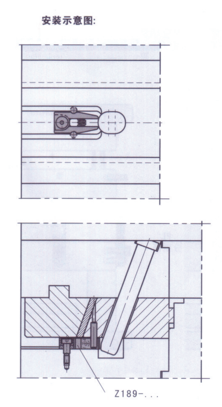 銷釘一般安裝在滑塊上,主體通過限位螺絲固定在 模板上,需精確計(jì)算好滑塊行程.