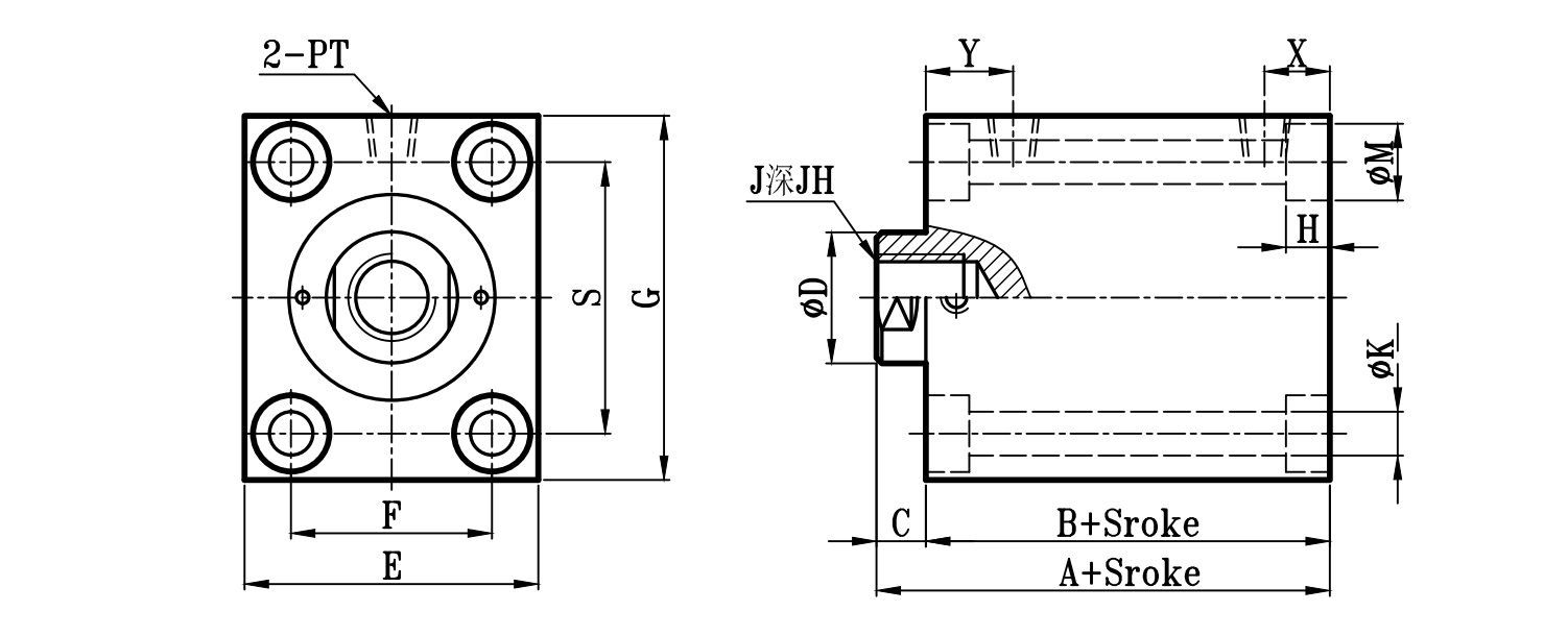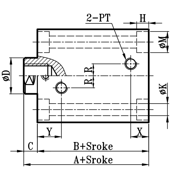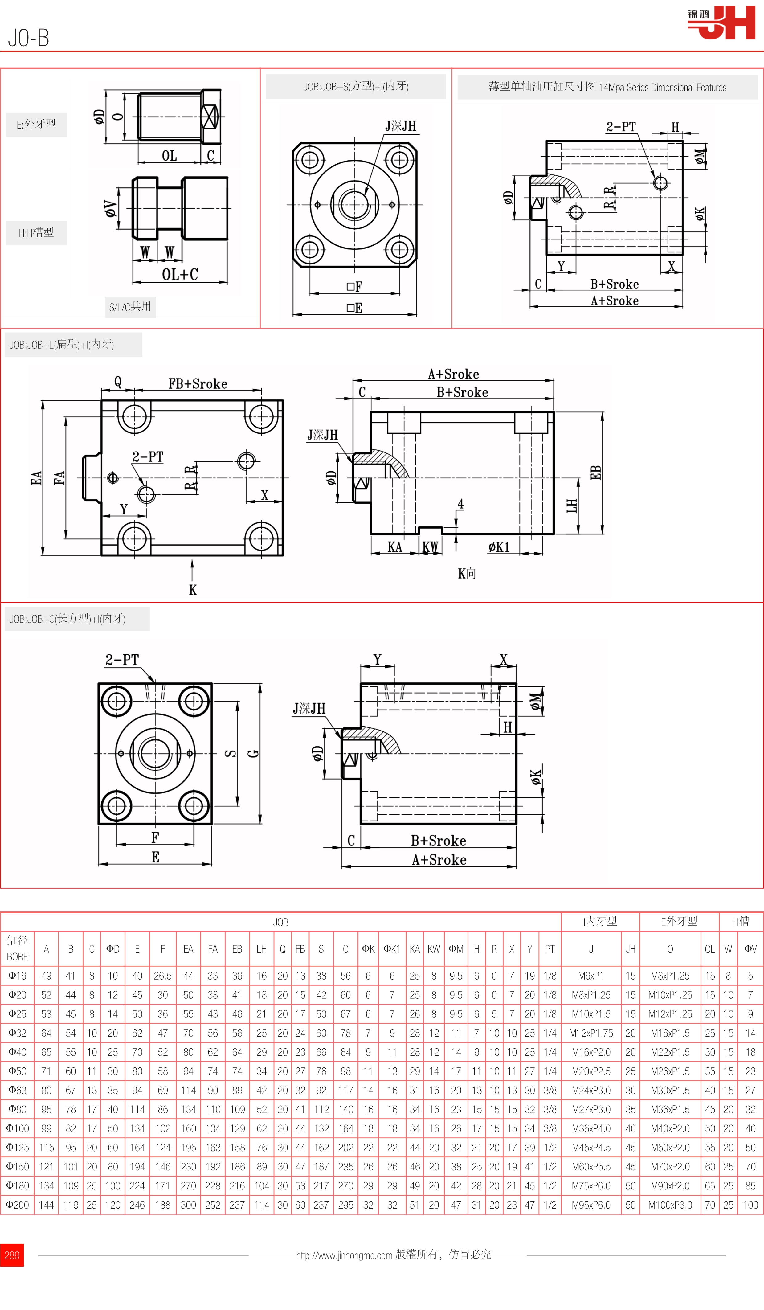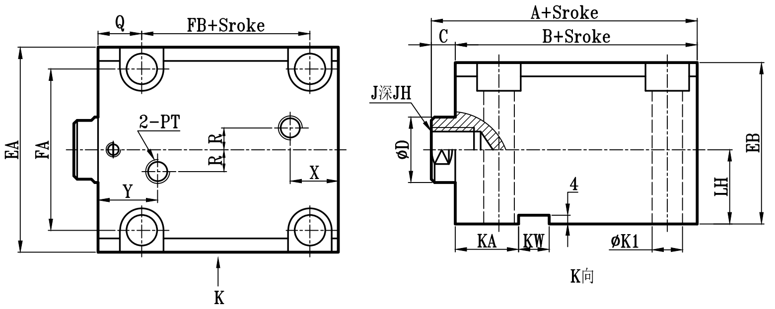 | 缸徑 BORE | A | B | C | ΦD | E | F | EA | FA | EB | LH | Q | FB | S | G | ΦK | ΦK1 | KA | KW | ΦM | H | R | X | Y | PT | J | JH | O | OL | W | ΦV |