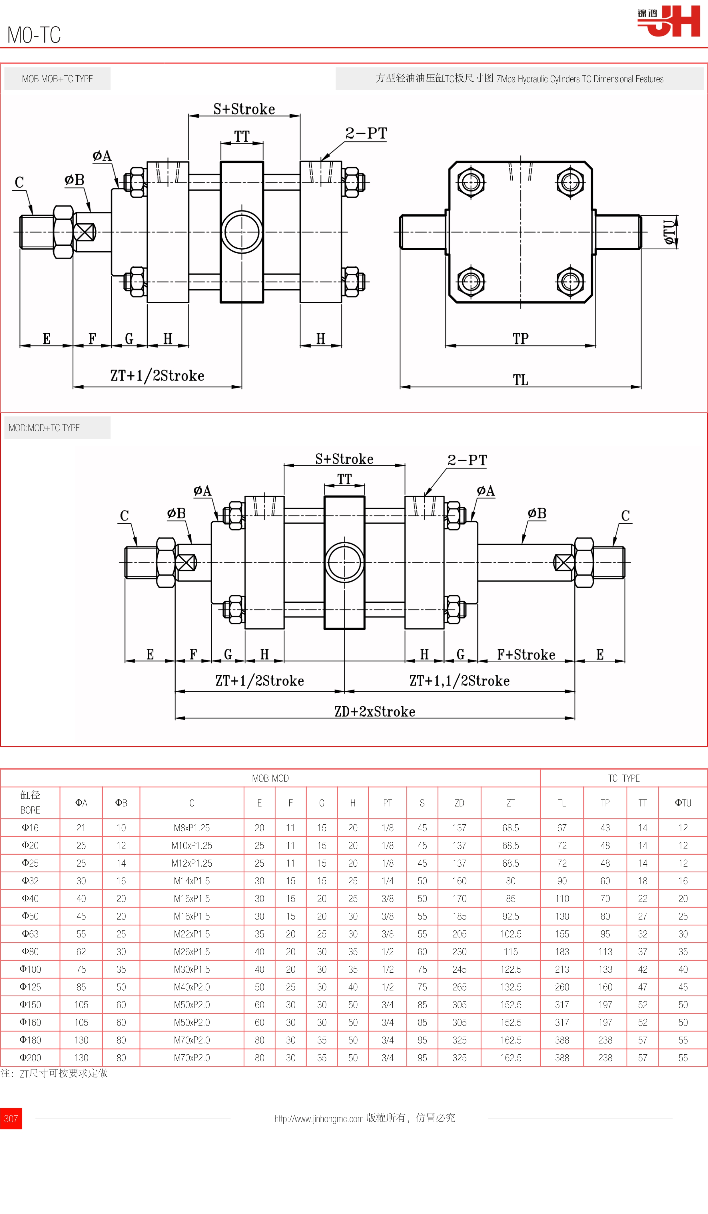 MOB:MOB+TC TYPE | 方型輕油油壓缸TC板尺寸圖 7Mpa Hydraulic Cylinders TC Dimensional Features |