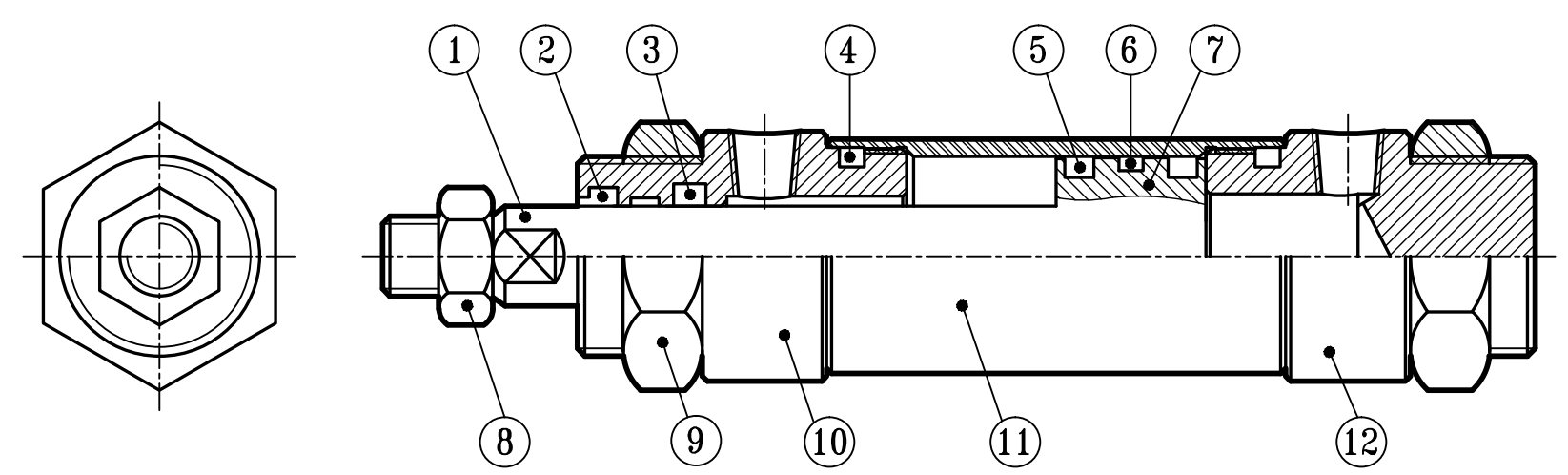 | 2 | 刮塵環 Dust wiper | 1 | 7 | 活塞本體 Piston | 1 | 12 | 后蓋 End cover | 1 |
