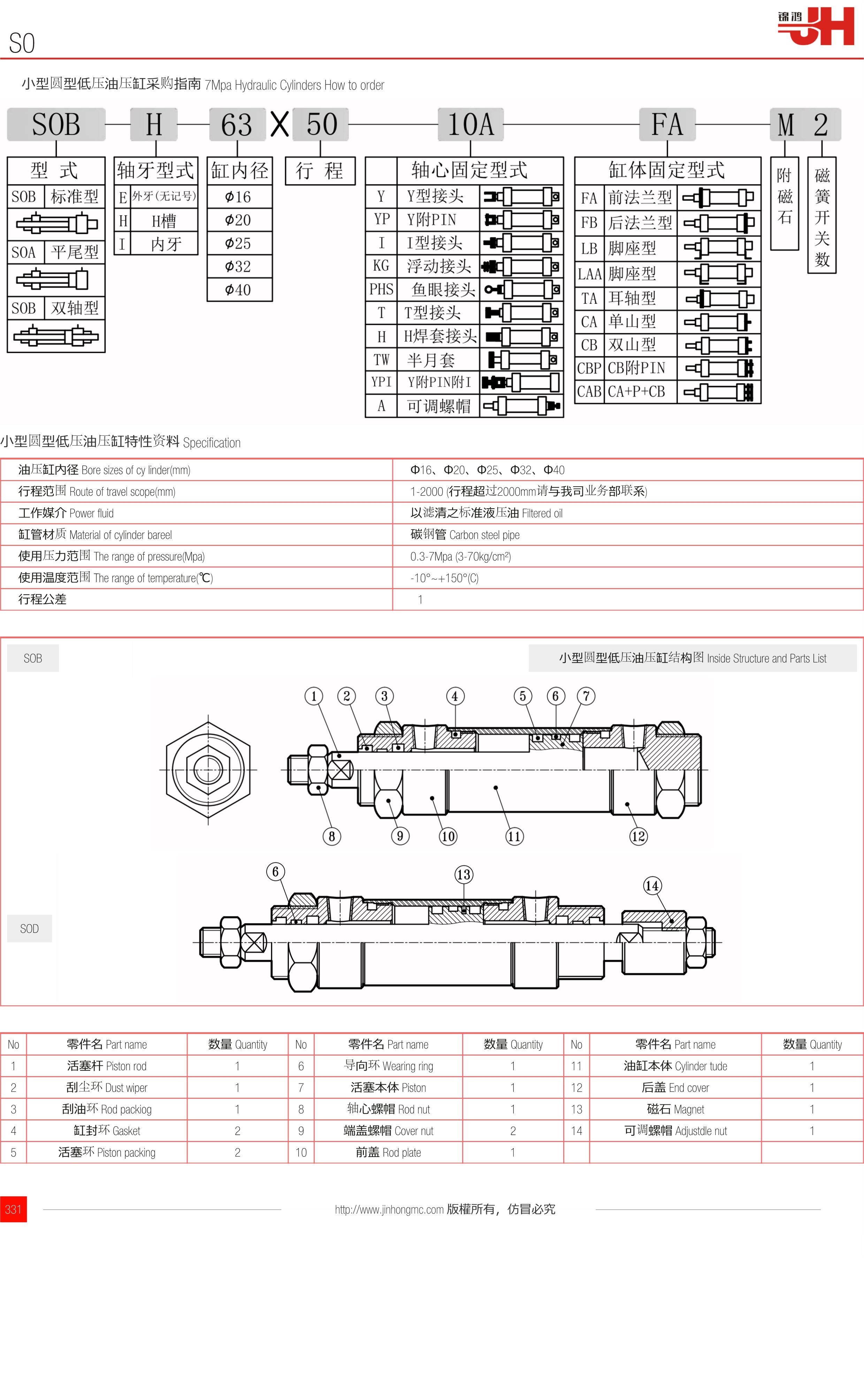 | 油壓缸內徑 Bore sizes of cy linder(mm) | Φ16、Φ20、Φ25、Φ32、Φ40 |