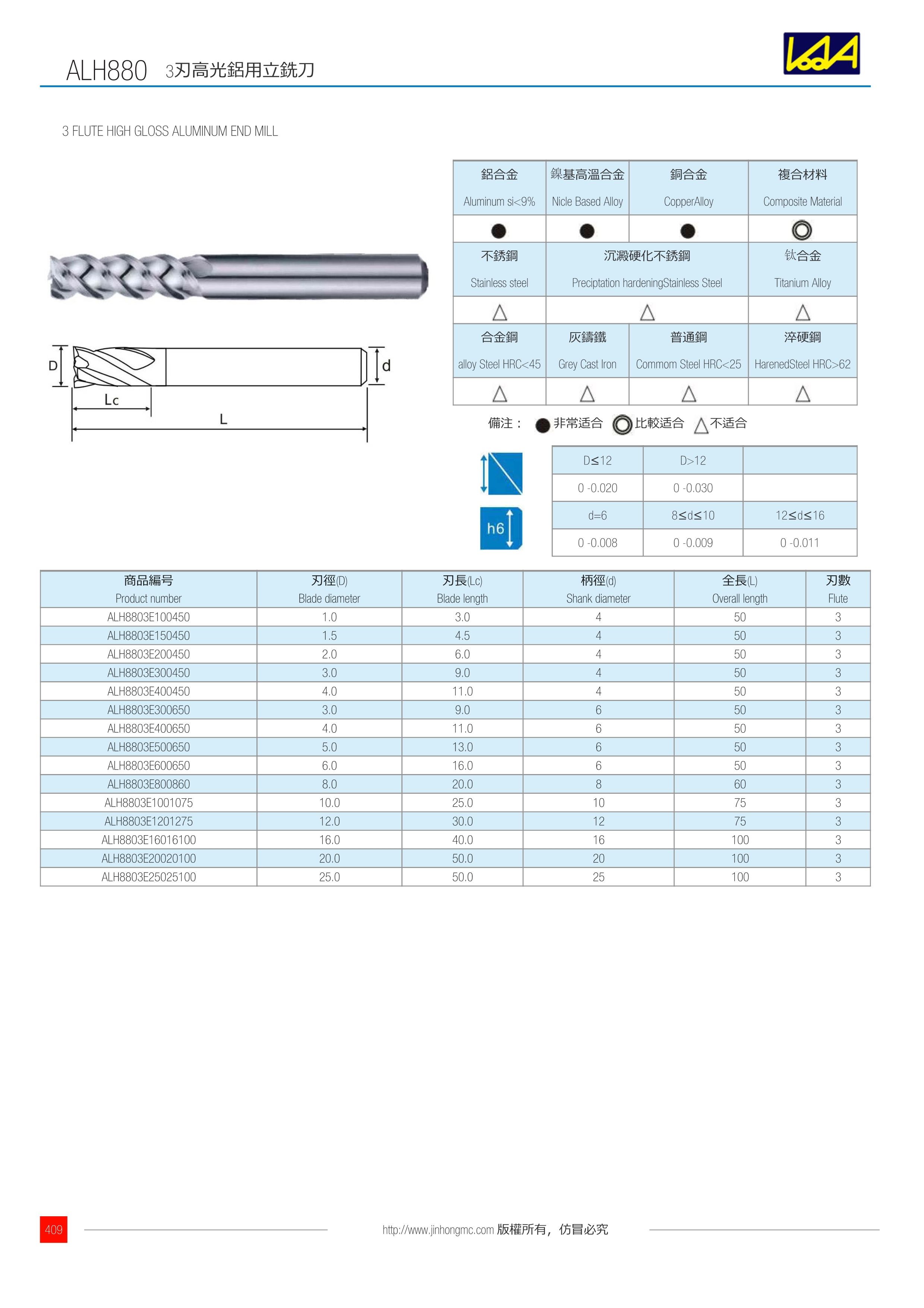 訂購(gòu):alh880 3刃高光鋁用立銑刀