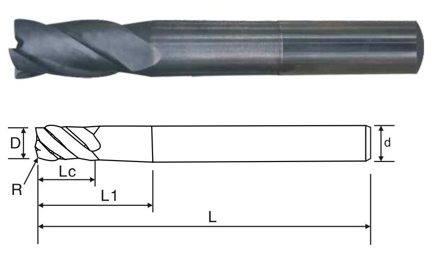 | 商品編號(hào) Product number | 刃徑(D) Blade diameter | R角 R angle | 刃長(zhǎng)(Lc) Blade length | 柄徑(d) Shank diameter | 全長(zhǎng)(L) Overall length | 刃數(shù) Flute |
