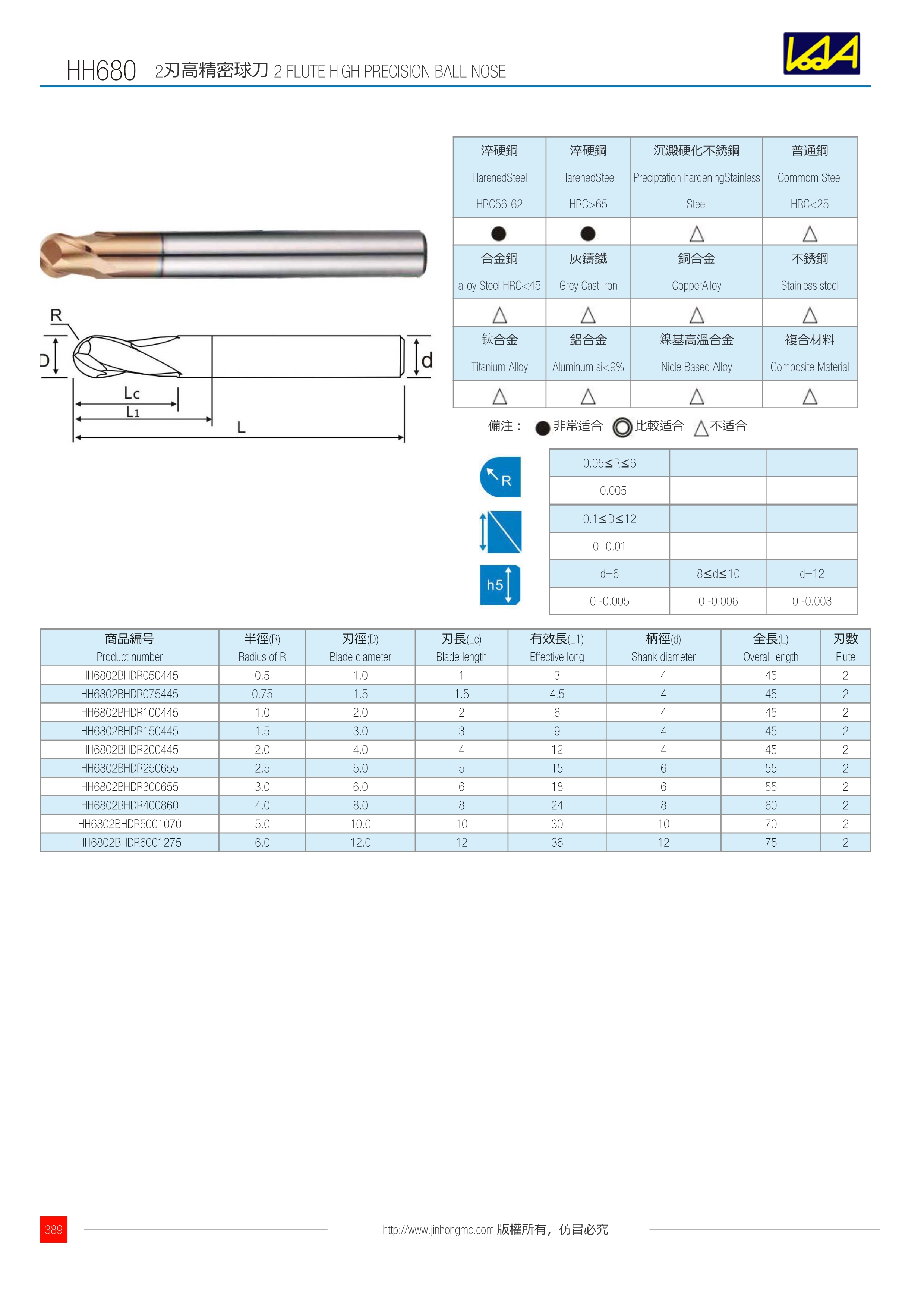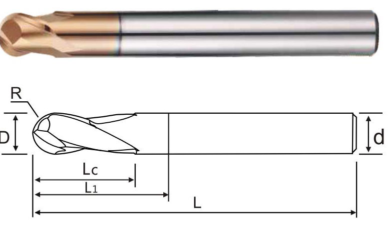 | 商品編號(hào) Product number | 半徑(R) Radius of R | 刃徑(D) Blade diameter | 刃長(zhǎng)(Lc) Blade length | 有效長(zhǎng)(L1) Effective long | 柄徑(d) Shank diameter | 全長(zhǎng)(L) Overall length | 刃數(shù) Flute |