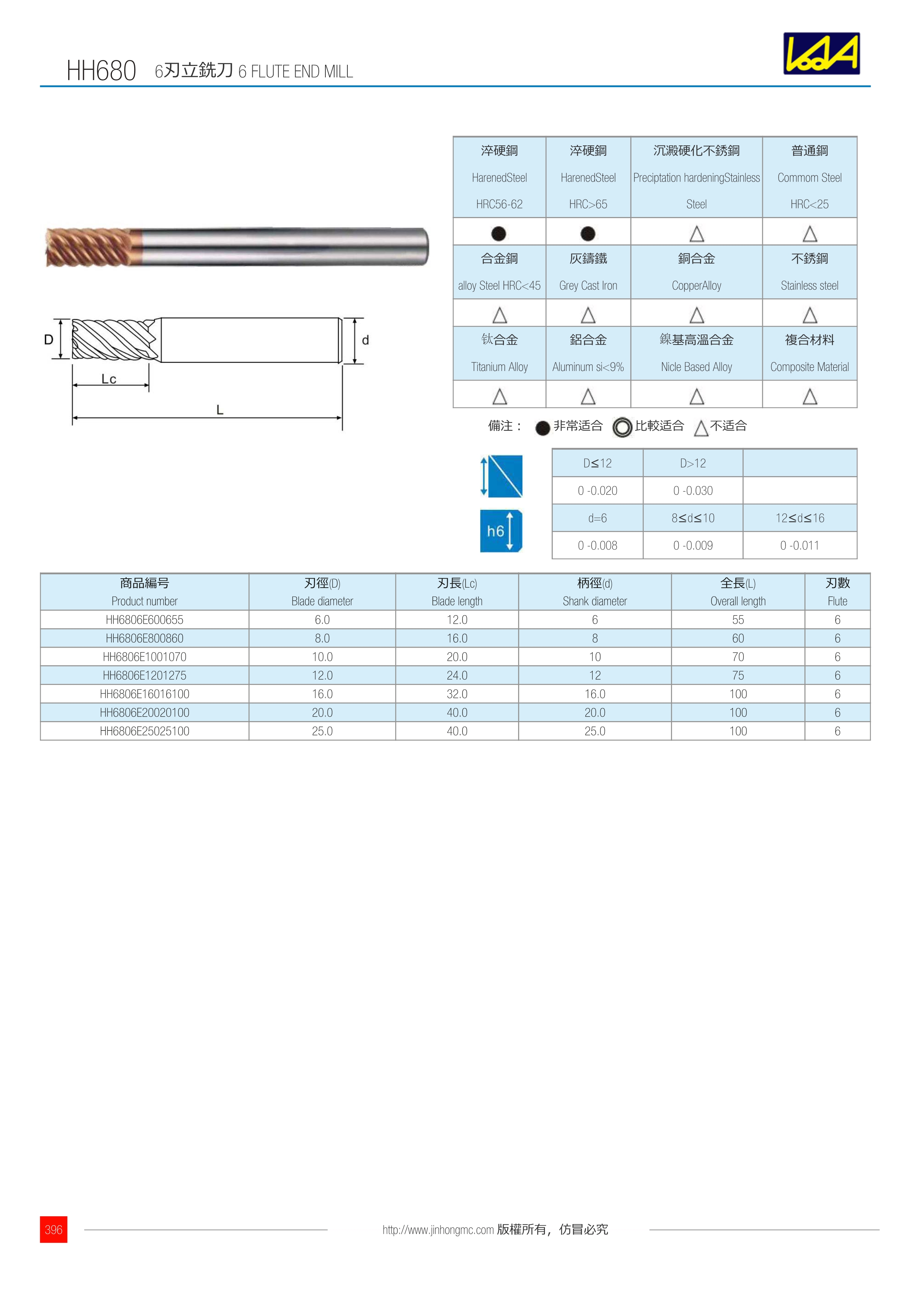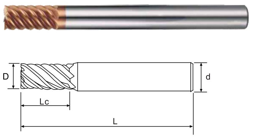 | 商品編號 Product number | 刃徑(D) Blade diameter | 刃長(Lc) Blade length | 柄徑(d) Shank diameter | 全長(L) Overall length | 刃數 Flute |