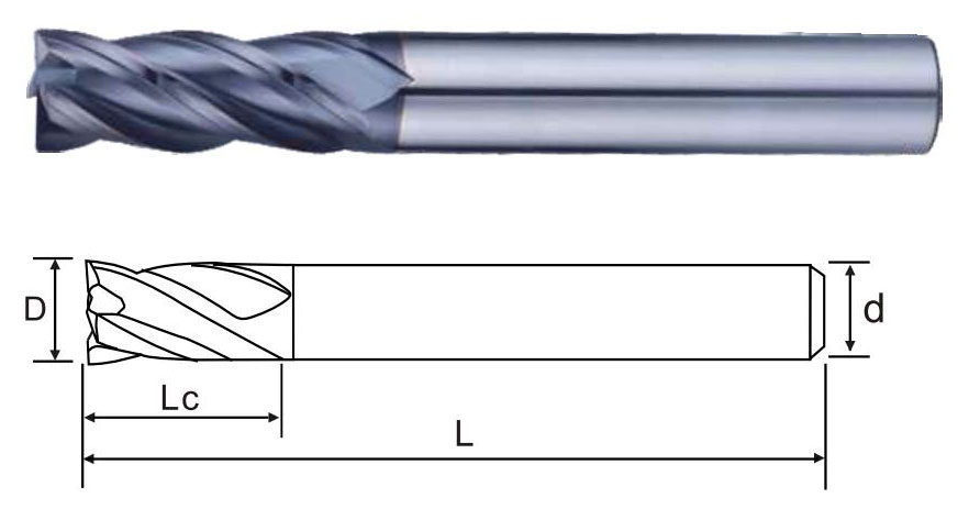 | 商品編號 Product number | 刃徑(D) Blade diameter | 刃長(Lc) Blade length | 柄徑(d) Shank diameter | 全長(L) Overall length | 刃數 Flute |