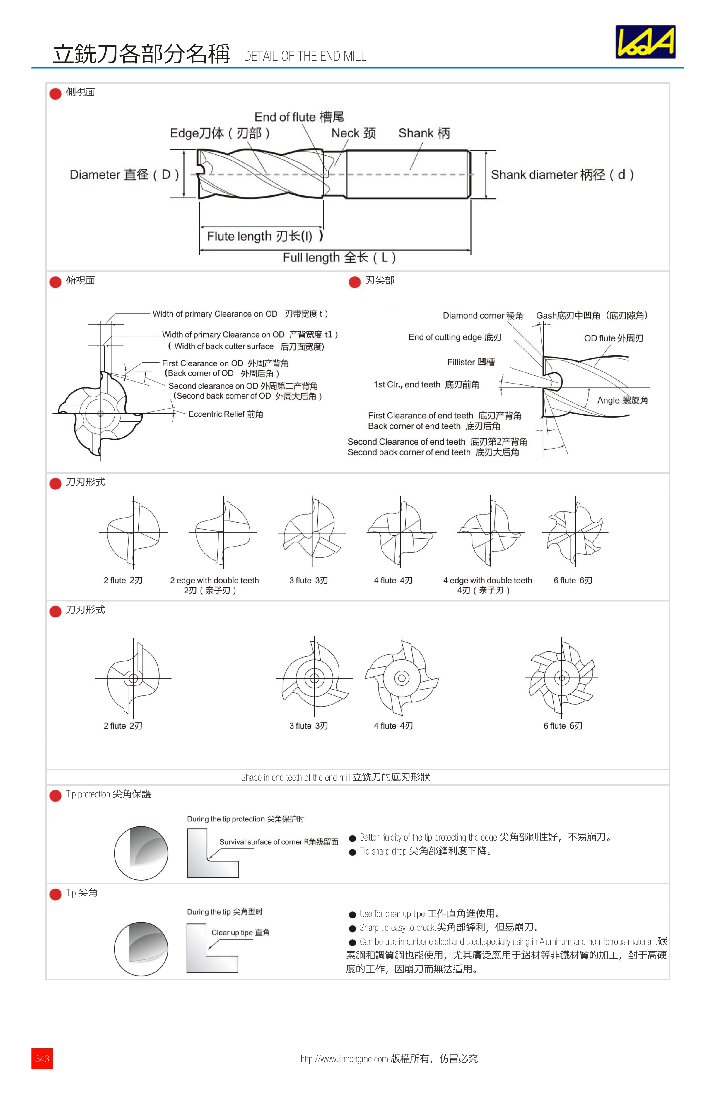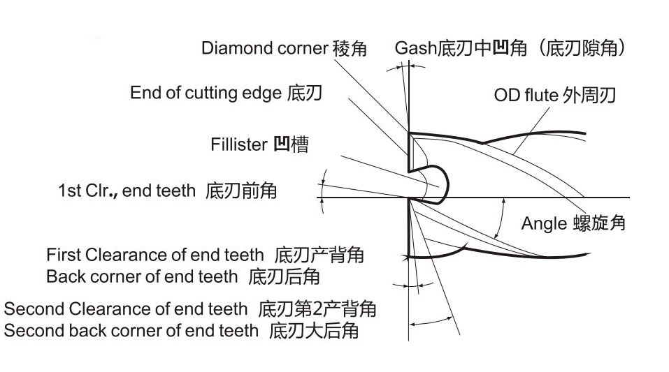 | Shape in end teeth of the end mill 立銑刀的底刃形狀 | |